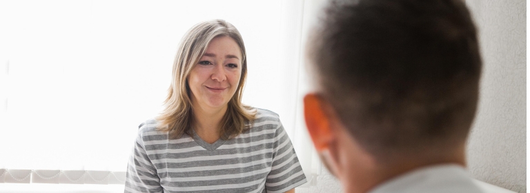 Mulher conversando com um psiquiatra