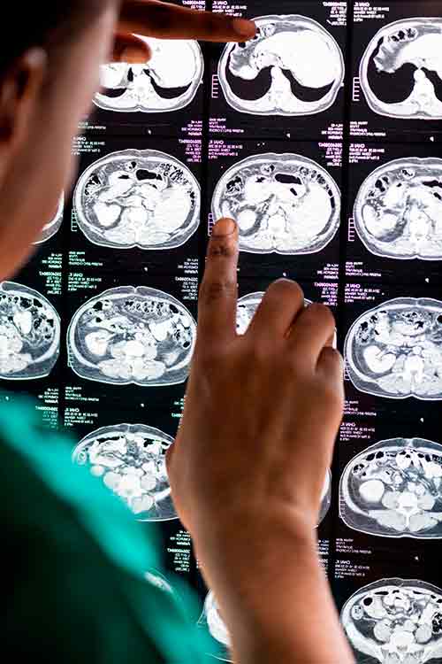 Em primeiro lugar, a Tomografia é um exame de diagnóstico não invasivo e sem dor, que visa obter imagens detalhadas de órgãos, estruturas e tecidos. Dessa forma, é capaz de identificar alterações e problemas em diversas partes do corpo, incluindo o cérebro, fígado, pâncreas, ossos, rins, útero, ovários, vias biliares, pulmões e pleura.